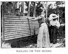 According to the brochure, "These girls, whose pictures we show you here, passed a delightful vacation erecting their own little cottage and enjoying it after completion."